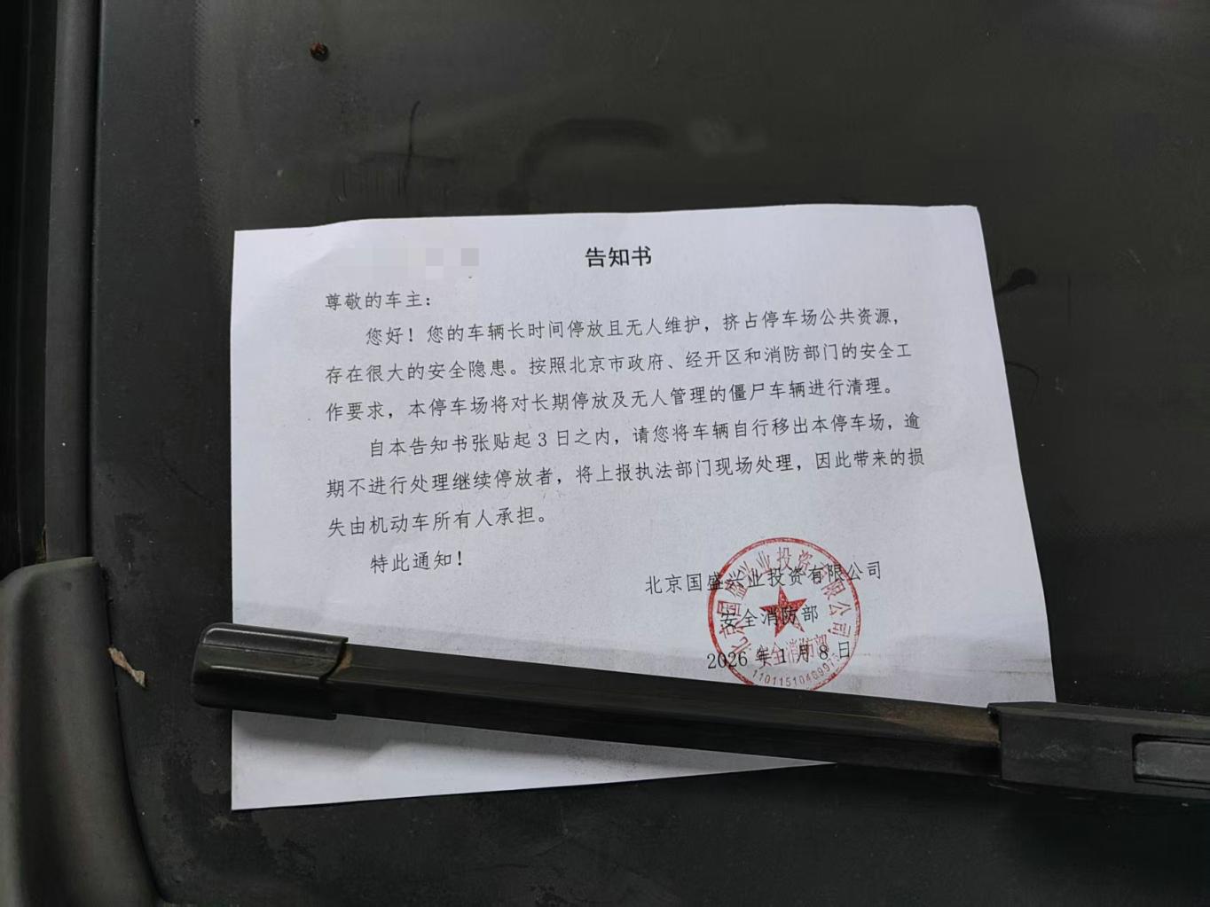 2026年1月,商场对一些占位不动的车辆张贴了告知书:“您的车辆长时间停放且无人维护,挤占停车场公共资源, 存在很大的安全隐患”。告知书还明确表示,将对长期停放及无人管理的僵尸车辆进行清理,自本告知书张贴起3日之内,请您将车辆自行移出本停车场,逾期不进行处理继续停放者,将上报执法部门现场处理,因此带来的损失由机动车所有人承担。不过,现在距离告知书张贴时间早已经超过3日,上述车辆依然没有移出停车场。