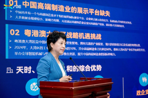 刘英对博览会进行了全面推介。她表示,AIE的诞生源于中国高端制造业的崛起和粤港澳大湾区在全球科技版图中日益重要的地位(科技集群创新指数连续五年全球第二)。本届博览会以“湾区智造·全球共享”为主题,旨在搭建中国与世界高质量贸易的国际交流平台,聚合中国高质量企业集体出海。博览会对标国际三大品牌展会,汇聚全球顶尖企业首发新品,展示未来十年尖端科技;打造“思想风暴眼”,邀请全球顶尖智库专家、企业家共议前沿趋势;构建“生态加速器”,破除壁垒,催化跨国合作;成为“政策风向标”,发布解读最新产业政策。