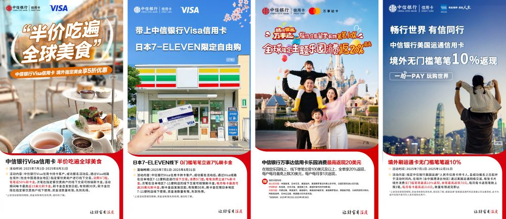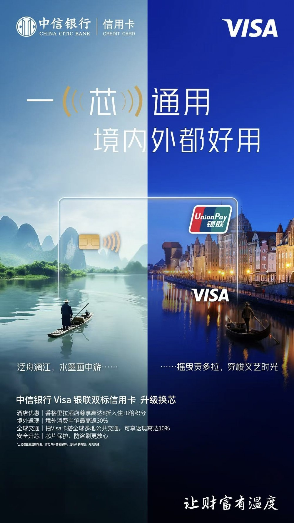 当前,暑期游热力全开,出境游市场已呈现爆发式增长,各大主流旅游平台数据显示,暑期签证办理及出境游预订量显著增多,短途及长线出境游热度均持续走高。为进一步优化持卡用户境外支付体验,中信银行启动银联-Visa双标磁条卡芯片化升级服务,升级后卡片可支持境内外银联、境外Visa网络支付,优化持卡人境内外用卡体验。同期,为更好满足广大消费者出境消费需求,中信银行信用卡开启“全球消费季”主题福利活动,围绕游玩、餐饮、购物等多个境外消费场景,推出丰富的跨境消费权益,为消费者打造更优惠、更省心的消费体验。